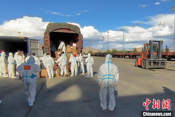 上海援藏防疫物資抵達(dá)日喀則。 國鐵青藏集團有限公司拉薩車務(wù)段 供圖