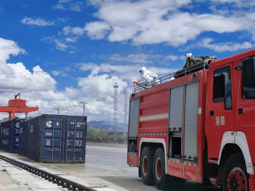拉薩西站聯(lián)系堆龍德慶區(qū)乃瓊街道防疫部門組織堆龍消殺隊(duì),對拉薩西站東門區(qū)域、中風(fēng)險(xiǎn)區(qū)宏順裝卸宿舍樓內(nèi)及大門進(jìn)行專業(yè)、全面、系統(tǒng)性消殺;日喀則站聯(lián)系市疫情防控部門消殺組,對林瑞達(dá)裝卸隊(duì)院內(nèi)、貨運(yùn)職工、裝卸隊(duì)住宿樓進(jìn)行;那曲站聯(lián)系市消防部門對車站、站臺(tái)、貨場等重要場所進(jìn)行專業(yè)、全面、系統(tǒng)性消殺。
