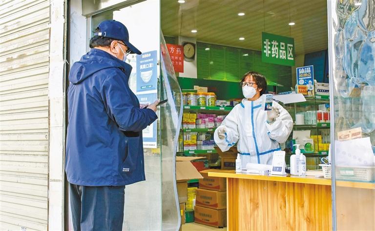 9月14日,記者走上街頭,看到超市、藥店、水果店等一些與群眾生活息息相關的商鋪已經開始向持有出入卡的群眾開放了。