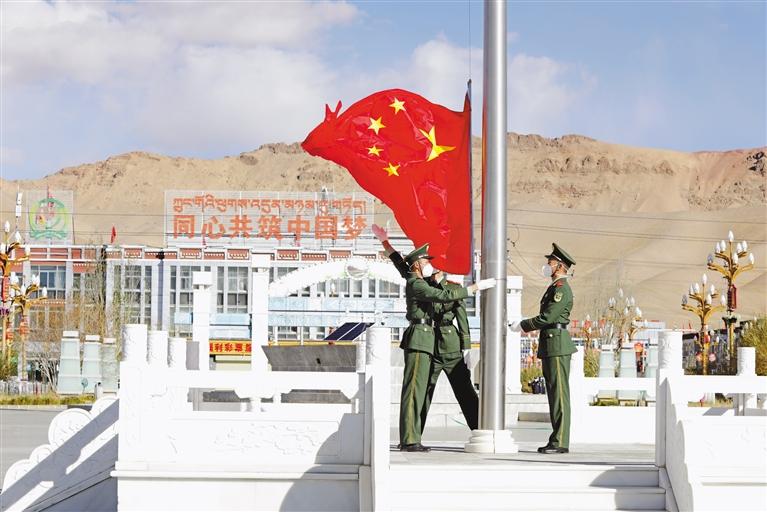拉薩市堆龍德慶區(qū)的門堆村和崗吉村組織全體村干部舉行線上線下升國旗儀式,鮮艷的五星紅旗冉冉升起,飄揚(yáng)在村委會上空。嘹亮的國歌聲中,鮮艷的國旗下,莊嚴(yán)肅穆的氛圍里,熱愛祖國、奮發(fā)圖強(qiáng)的情感在每個人心中激蕩。