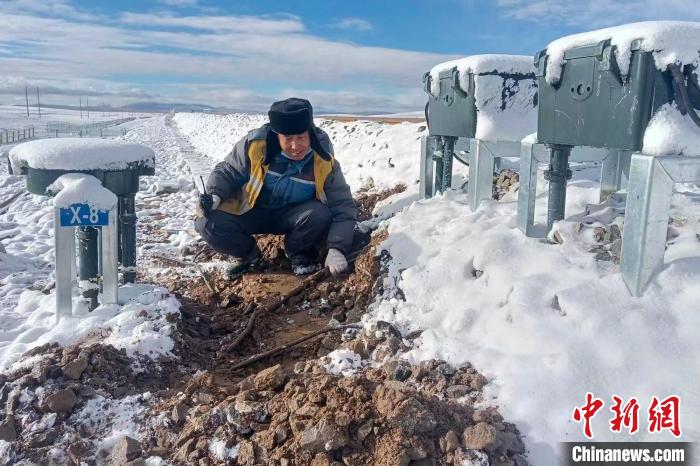 梁海峰在白雪皚皚的青藏鐵路唐古拉南站檢查信號設(shè)備?!±顒P豐 攝