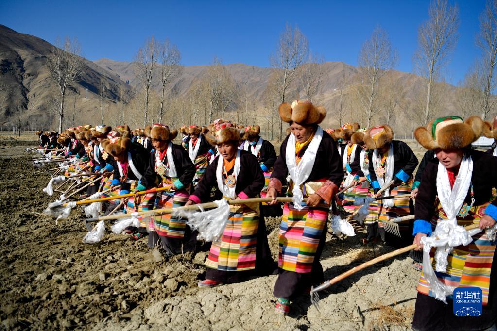 西藏山南市乃東區(qū)門中崗社區(qū)春耕儀式現(xiàn)場(2022年3月16日攝)。新華社記者 張汝鋒 攝