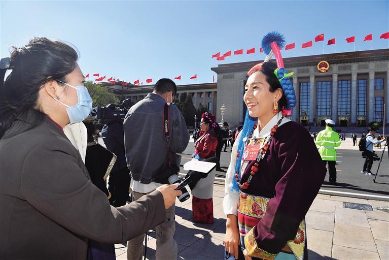 次仁拉姆代表表示,回望來時(shí)路,新時(shí)代十年的成就令人振奮;展望前行路,新征程的藍(lán)圖催人奮進(jìn)。曲措代表說:“當(dāng)代中國青年是幸運(yùn)的,施展才華的舞臺無比廣闊,實(shí)現(xiàn)夢想的前景無比光明。我將懷抱夢想,腳踏實(shí)地,回去后認(rèn)真學(xué)習(xí)好、宣傳好、貫徹好黨的二十大精神,并切實(shí)擔(dān)負(fù)起新時(shí)代新征程賦予的使命與責(zé)任?!蹦岈斃诖碚f:“作為一名基層干部,我將按照黨中央要求,吃透黨的二十大精神,狠抓落實(shí),用心用情用力解決群眾‘急難愁盼’問題,投身美麗幸福西藏建設(shè),守護(hù)好祖國每一寸土地。”