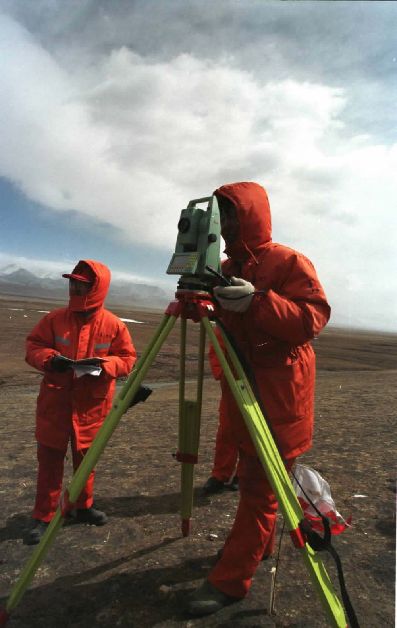2001年4月,鐵道部第一設(shè)計(jì)院的勘測(cè)人員在海拔近5000米的四道梁加緊進(jìn)行青藏鐵路的勘測(cè)工作。在國(guó)務(wù)院批準(zhǔn)修建青藏鐵路后,鐵道部第一設(shè)計(jì)院的上千名勘測(cè)人員克服惡劣的自然條件,為青藏鐵路早日開(kāi)工夜以繼日地工作。