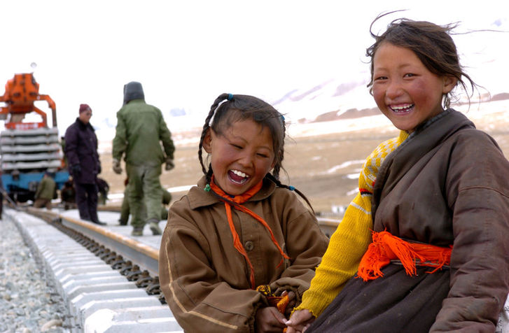 青藏鐵路的建設(shè)工地成為了附近居民最大的關(guān)注點(diǎn),老鄉(xiāng)們來(lái)到工地東瞅瞅、西瞧瞧,好奇地摸摸鐵軌,或者甚至拉著工人們問(wèn)問(wèn)這、問(wèn)問(wèn)那——盡管很多時(shí)候,由于語(yǔ)言不通的緣故,他們并不能夠了解對(duì)方在說(shuō)什么。在故鄉(xiāng)人的臉上,我看到了對(duì)未來(lái)變化的憧憬,以及對(duì)鐵路建成越來(lái)越急迫的渴望。