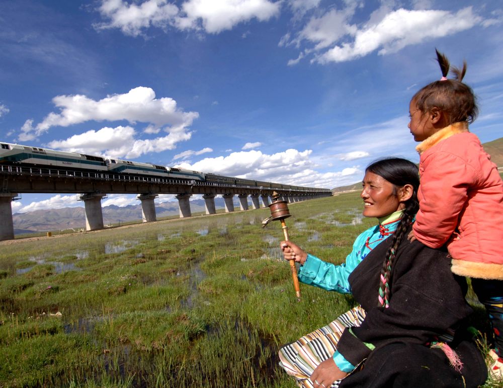 2006年6月17日,白瑪拉姆背著尼瑪拉姆看著從自家門(mén)口駛過(guò)的火車。