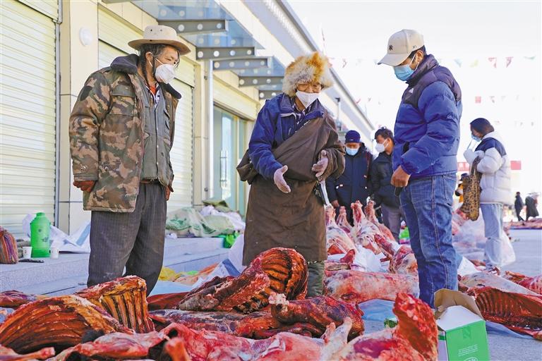 當(dāng)?shù)厝罕娺x購牛羊肉。記者 永青 攝