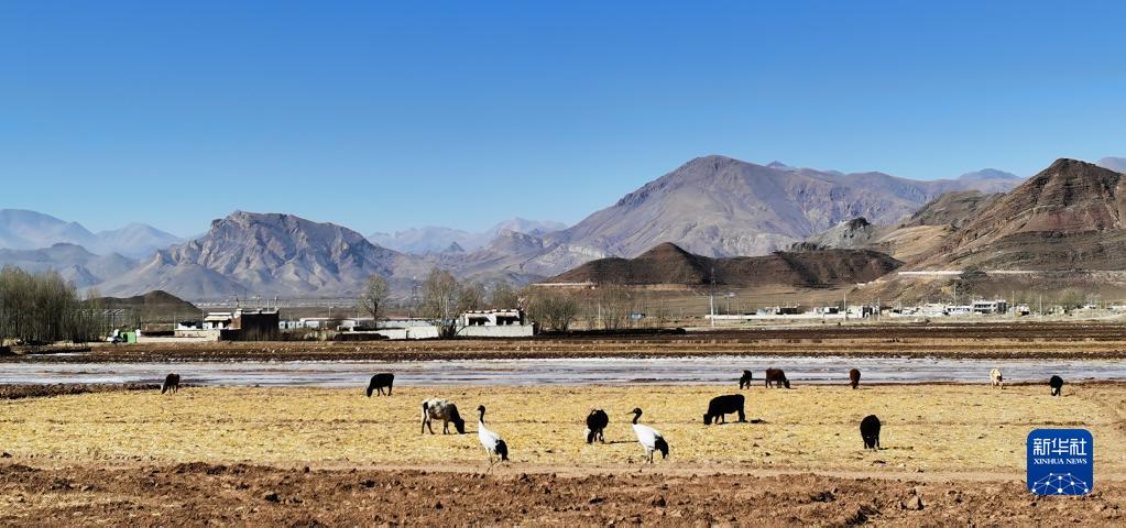 拉薩市林周縣松盤鄉(xiāng)冬日田野,動(dòng)物和諧相處(12月24日攝,手機(jī)照片)。新華社記者 沈虹冰 攝
