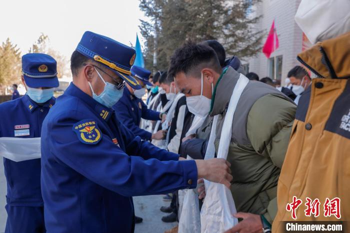 為新入營消防員獻上迎接哈達。 侯杰 攝