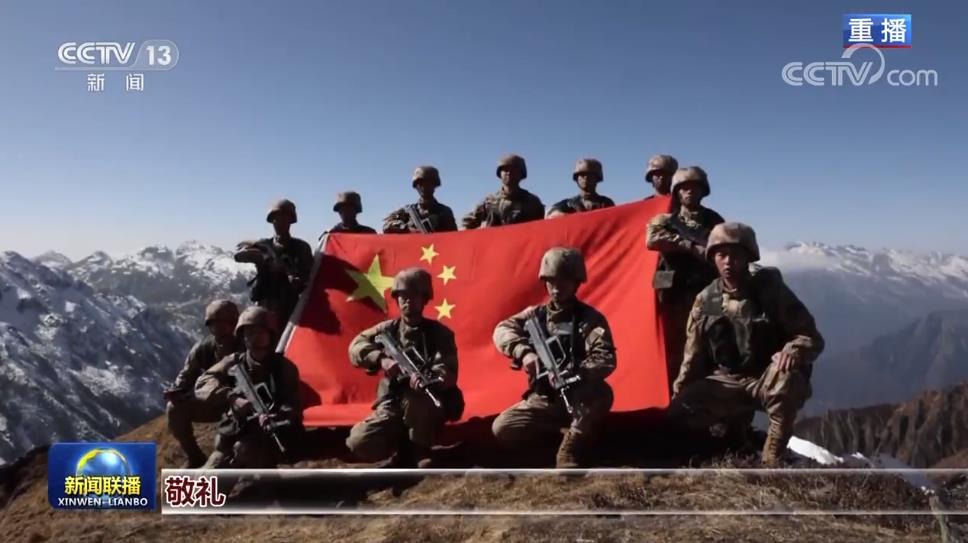 巡邏隊(duì)在中午登上海拔5000多米的高山點(diǎn)位,他們?cè)谶@里展開(kāi)國(guó)旗,宣示主權(quán)。