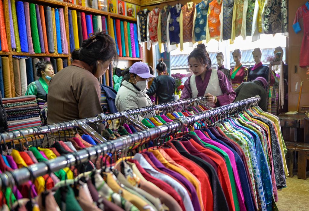 記者看到,古城大街小巷置辦年貨的人群摩肩接踵,市場上酥油、“卡塞”、人參果、五彩青稞穗等藏族傳統(tǒng)年貨應有盡有,來自祖國大江南北的特色產(chǎn)品豐富充裕。