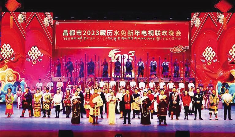玉兔呈祥逢盛世,三江大地齊歡騰。2月4日晚,昌都劇院洋溢著歡樂喜慶的氛圍,以“初心續(xù)輝煌·逐夢新征程”為主題的昌都市2023藏歷新年電視聯(lián)歡晚會精彩上演,并進行錄制。晚會現(xiàn)場邀請了昌都市各族干部群眾一同觀看。