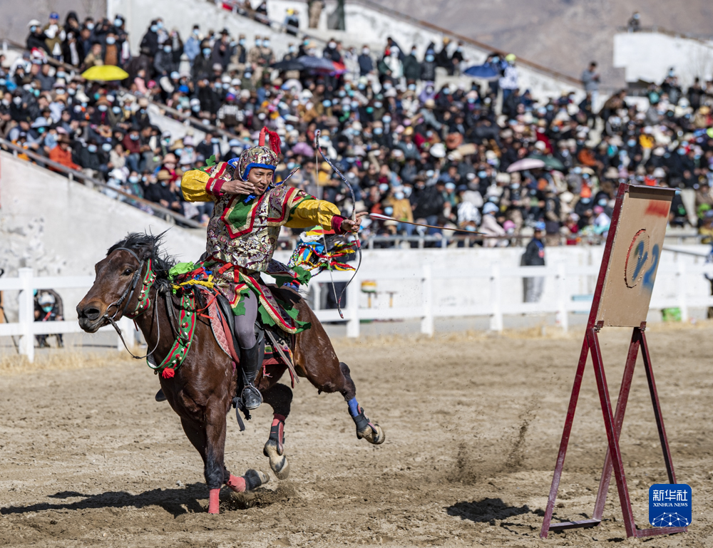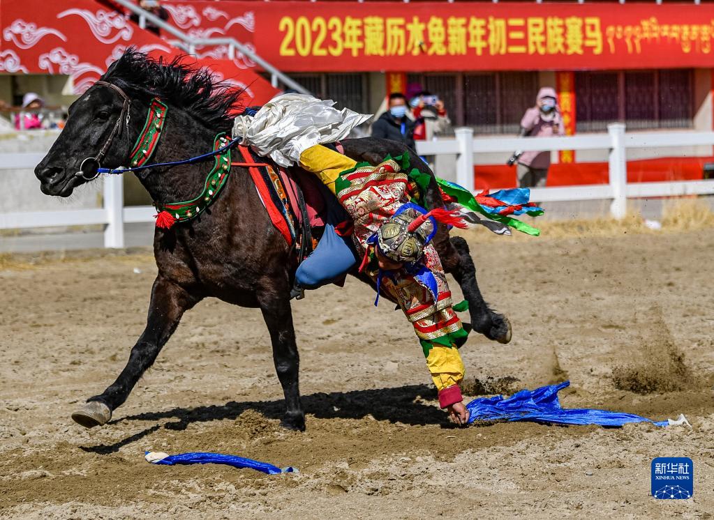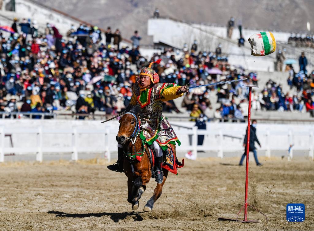 2月23日,在拉薩賽馬場舉辦馬術表演已成為當?shù)貞c祝新年的傳統(tǒng),深受廣大群眾喜愛。騎手們英姿颯爽,為觀眾們帶來騎馬拾哈達、騎馬射箭等精彩表演。