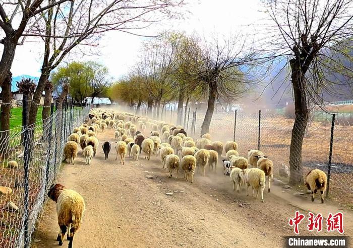 圖為巴嘎村養(yǎng)殖的高原綿羊?!〉录?攝