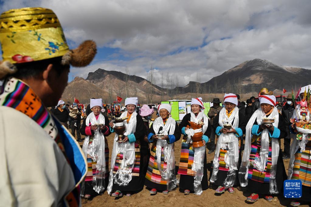 西藏拉薩市林周縣強嘎村的春耕儀式現(xiàn)場(3月16日攝)。新華社記者 張汝鋒 攝