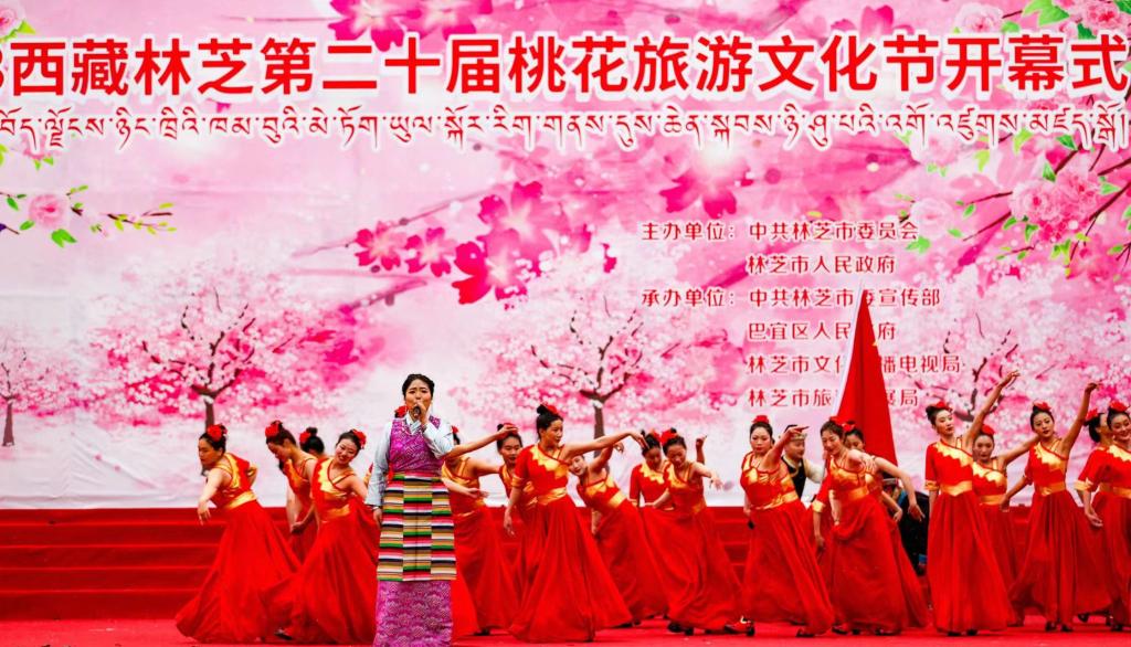 林芝桃花旅游文化節(jié)開幕式現(xiàn)場(3月28日攝)。新華社記者姜帆 攝