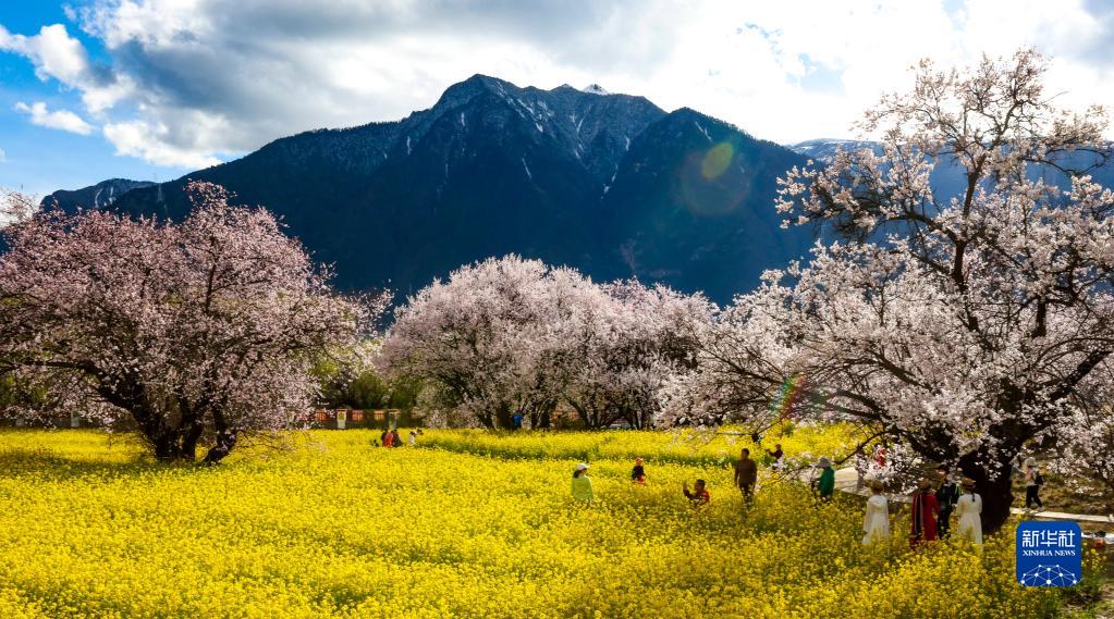 游客在嘎拉村桃花園中游玩(3月24日攝)。新華社記者 姜帆 攝