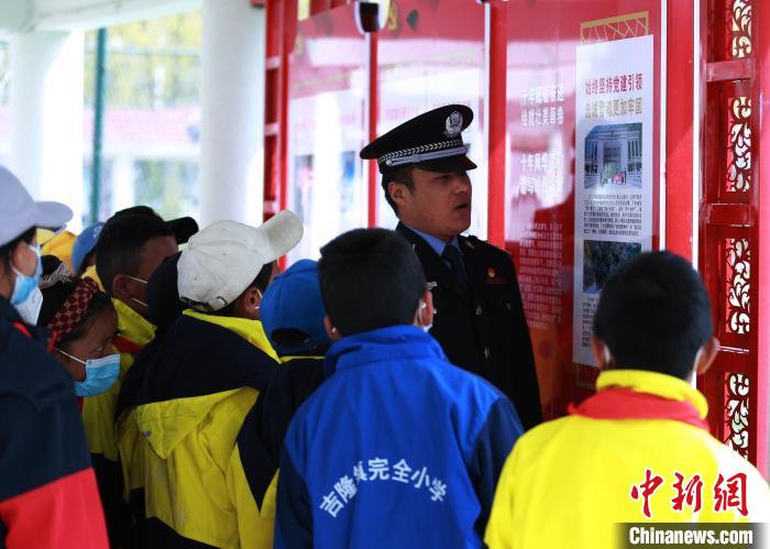 27日下午,60多名學(xué)生在老師帶領(lǐng)下走進(jìn)吉隆邊檢站警營,師生在移民管理警察引導(dǎo)下參觀警營文化長廊、警史館和閱覽室,觀摩警棍、盾牌、槍支等警用裝備,觀看西藏發(fā)展變化教育片,聆聽新舊西藏對(duì)比相關(guān)故事。