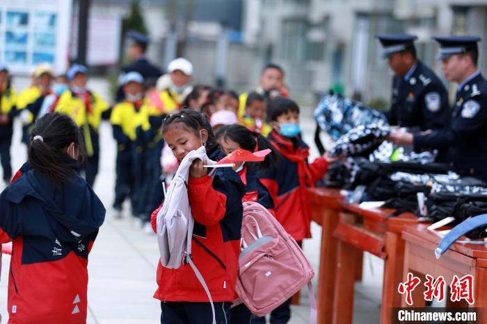 移民管理警察為學(xué)生發(fā)放書包,鼓勵(lì)學(xué)生好好學(xué)習(xí),將來成為棟梁之材?!⌒じ毁F 攝