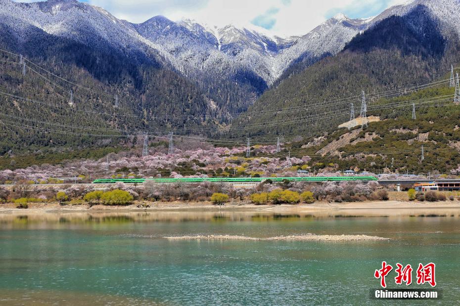 雪山、雅魯藏布江、高原復(fù)興號(hào)以及沿線的桃花。