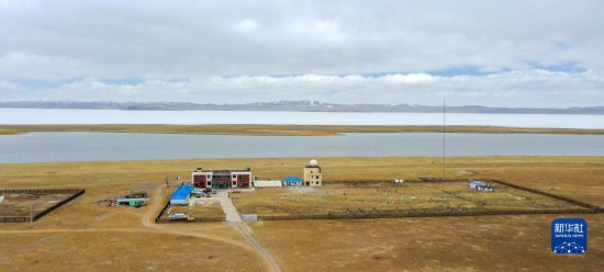 俯瞰中國科學(xué)院納木錯多圈層綜合觀測研究站(無人機照片,4月13日攝)。新華社記者 姜帆 攝