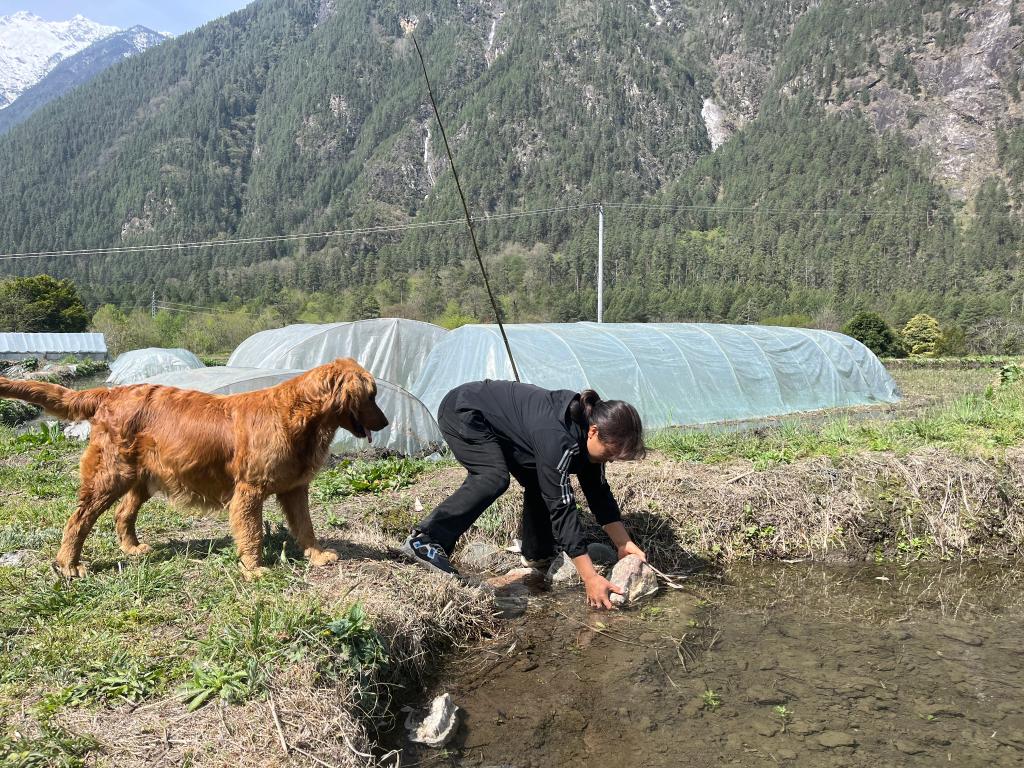 4月春風(fēng)和煦,32歲的珞巴族姑娘安陽麗,深一腳淺一腳地踩在水稻田里,熟練操作著旋耕機(jī)對自家7畝地進(jìn)行翻土。頭頂太陽,安陽麗皮膚曬得黝黑,汗珠順著臉頰不停往下流。
