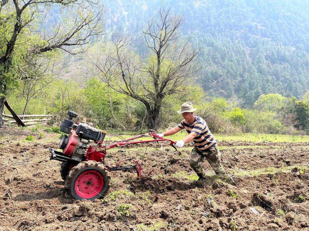 44歲的村民夏多這幾天一刻不得閑,每天一大早,便戴好草帽,穿上膠鞋直奔地里。前些日子剛把水稻田松土澆水完后,緊接著他又一頭扎進(jìn)玉米地,推著犁地機(jī)將田地犁出一道道深深的壟溝。“今年我還要幫其他人耕地,13畝多的地得抓緊收拾好,過幾天就要種玉米了?!?/p>