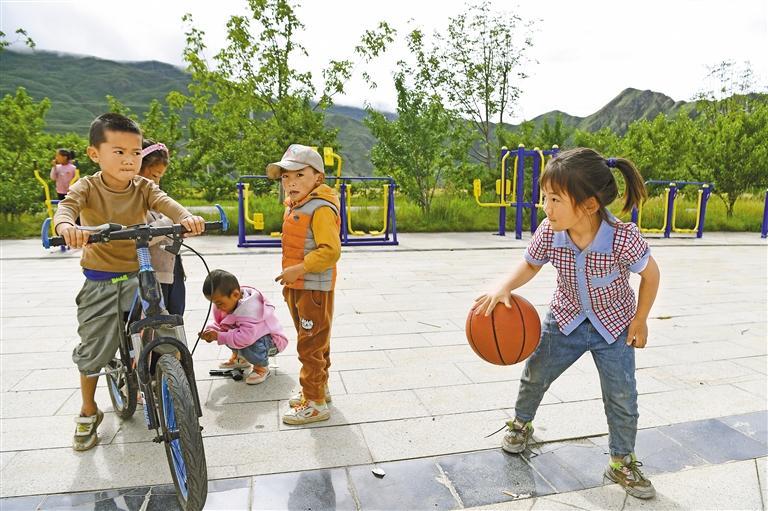 圖為山南市加查縣冷達(dá)鄉(xiāng)共康村的孩子們在干凈整潔的廣場上玩耍。記者 李洲 攝
