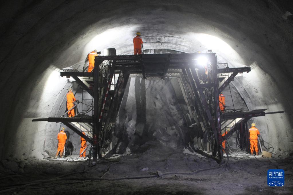 在拉薩至日喀則高速公路帕當山隧道,工人正進行掌子面打眼作業(yè)。(中鐵二十一局供圖)