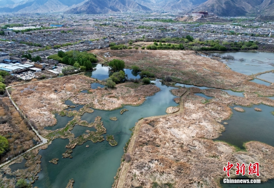 5月1日,空中鳥瞰拉魯濕地。(無人機(jī)照片)