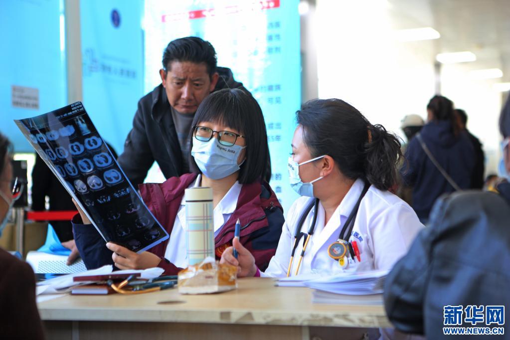 圖為“京藏攜手,護佑藍唇”義診活動現(xiàn)場,楊蘇喬醫(yī)生(右二)在為患者診治疾病。(5月5日攝)
