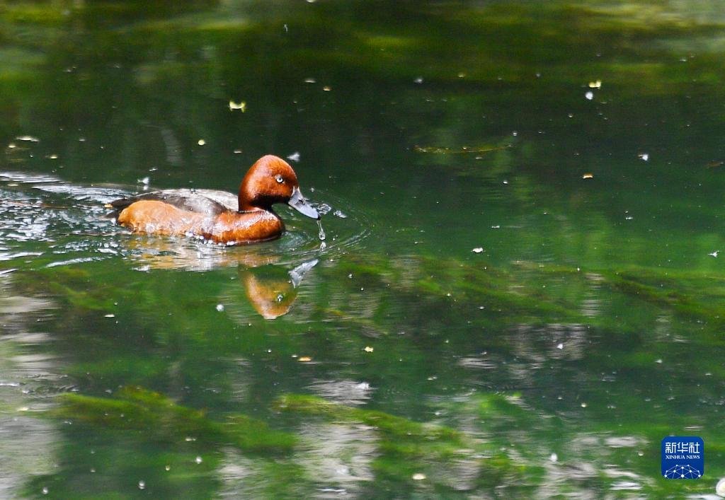 5月6日在拉魯濕地拍攝的白眼潛鴨。新華社記者 張汝鋒 攝