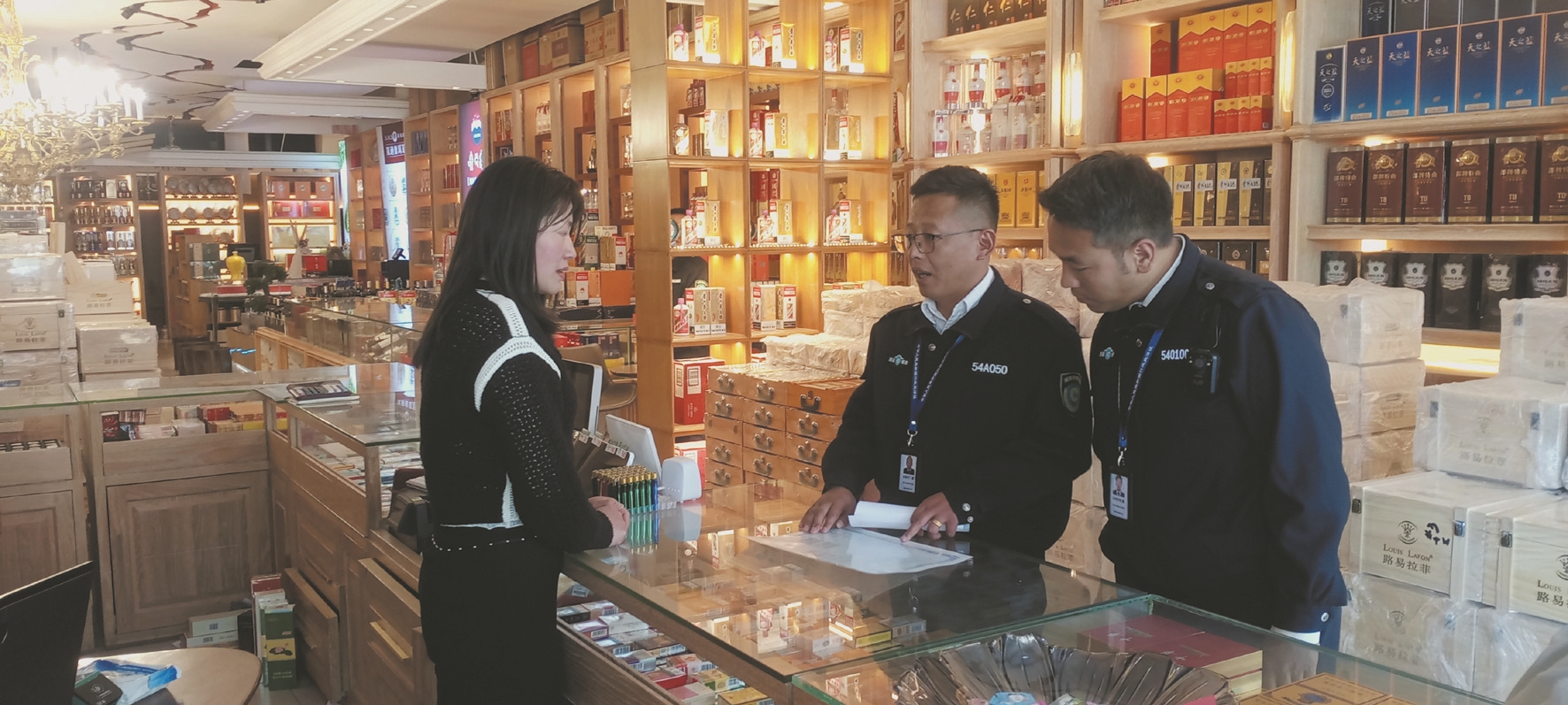 圖為執(zhí)法人員對(duì)拉薩市煙草零售終端店進(jìn)行突擊檢查。拉薩融媒記者 齊永昌攝