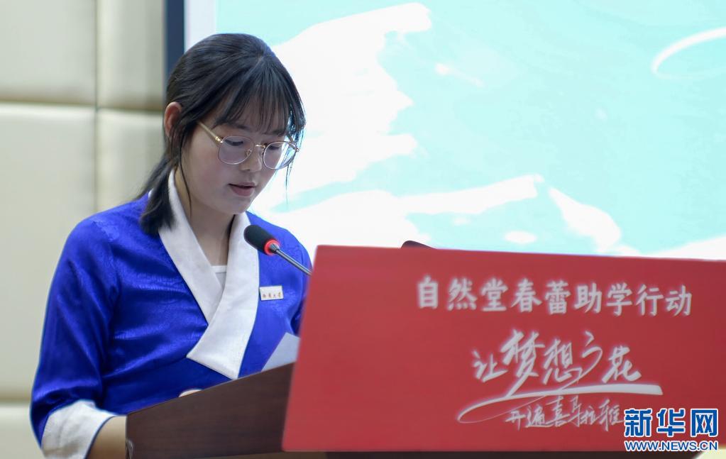 西藏大學(xué)2021級漢語言文學(xué)班學(xué)生德慶旺姆作為受資助學(xué)生代表發(fā)言時說:“國家和社會的各類資助給我和我的家庭帶來很大幫助,真誠感謝伽藍(lán)集團(tuán)、學(xué)校、老師、同學(xué)和所有幫助我的人,我會在你們的支持和關(guān)愛中懂得感恩,學(xué)會去愛?!?/p>