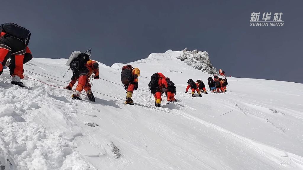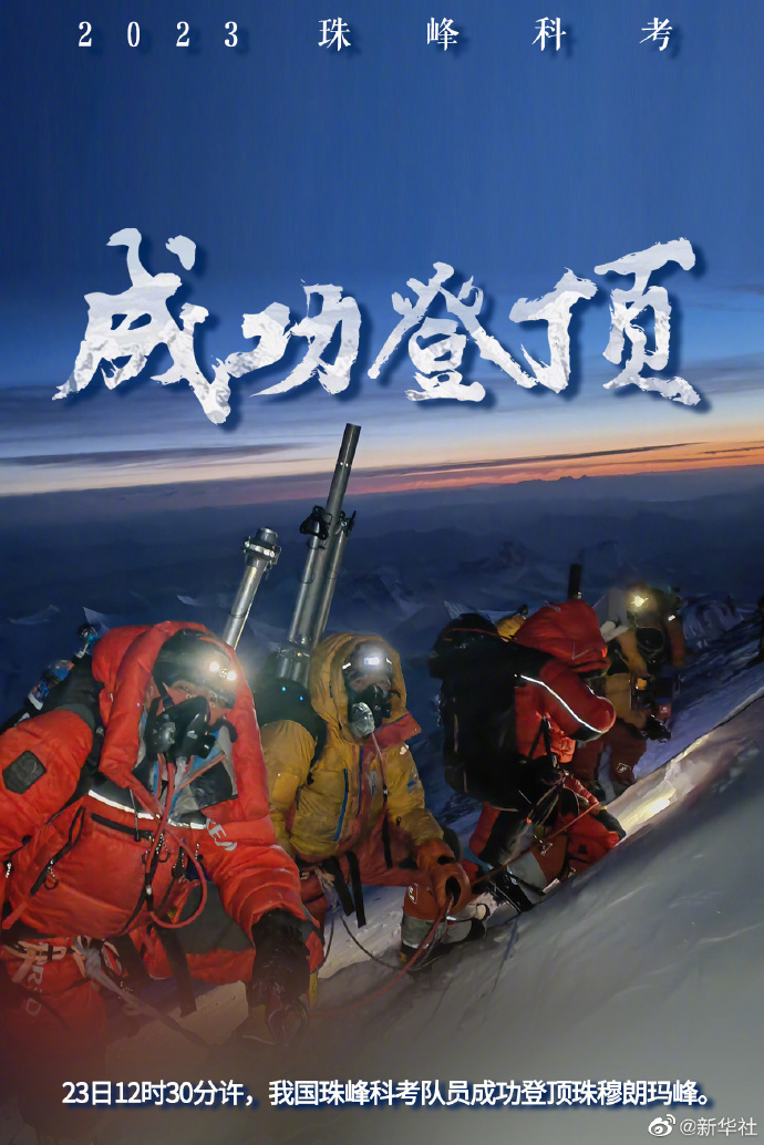 這是我國(guó)珠峰科考繼2022年之后,再次突破8000米以上海拔高度。當(dāng)日,科考隊(duì)員在珠峰峰頂利用科學(xué)儀器,采集珠峰峰頂?shù)难┍鶚悠?,用于分析氣候環(huán)境指標(biāo)。
