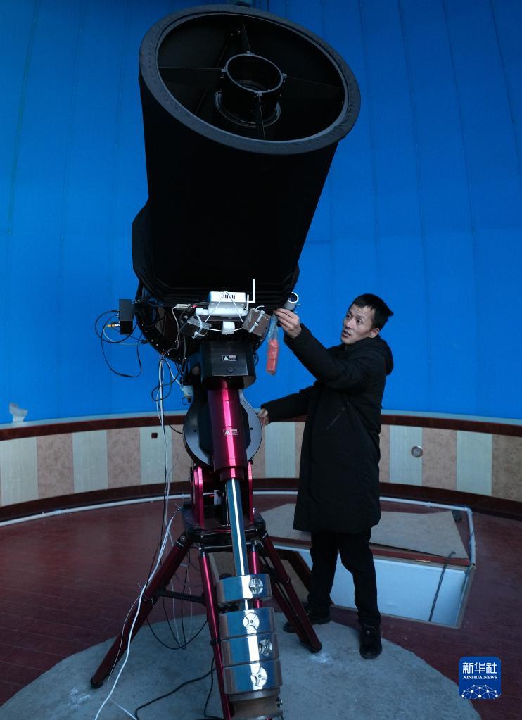 尤顯龍?jiān)谖铿斦具M(jìn)行夜間望遠(yuǎn)鏡實(shí)驗(yàn)(2010年12月攝)。新華社發(fā)