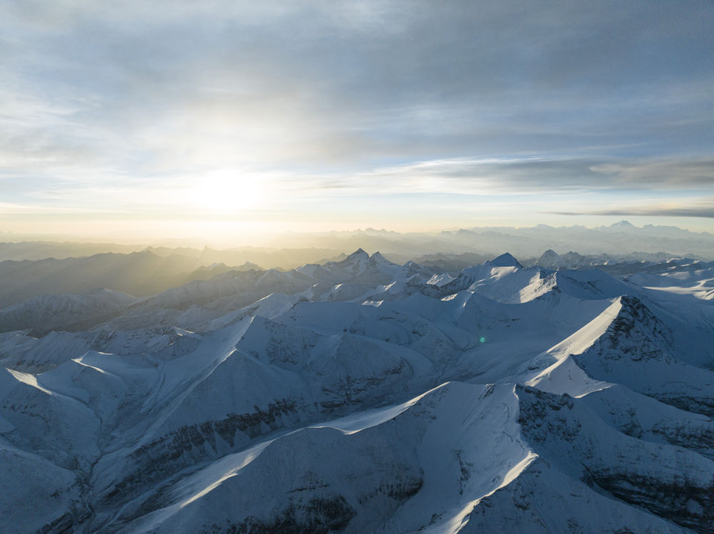 這是在海拔6000米左右高空拍攝的喜馬拉雅山脈群山(5月26日攝,無人機(jī)照片)。新華社記者 孫非 攝