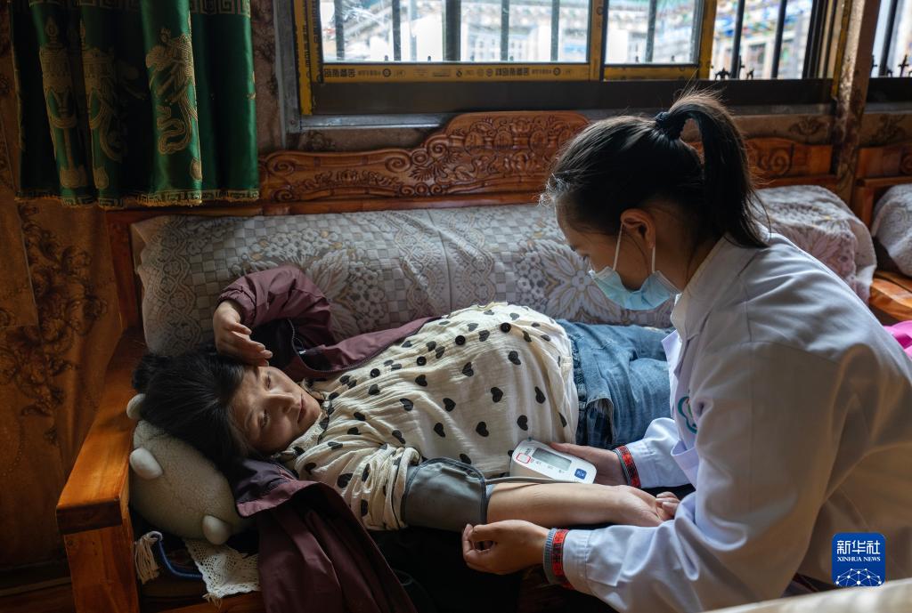 6月12日,王振疆(右)為吞不絨村89歲的村民娘姑進行檢查。新華社記者 費茂華 攝