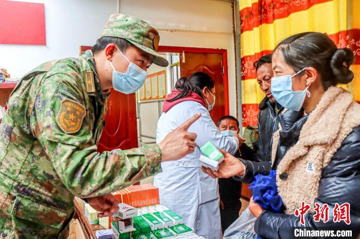 圖為醫(yī)療隊(duì)為村民發(fā)放藥品,并告知服藥方法。 朱文秀 攝