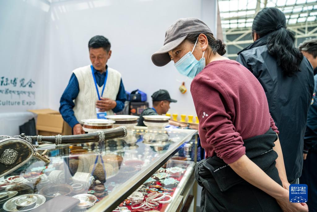 在藏博會上,消費者觀看琳瑯滿目的西藏特產(chǎn)(6月17日攝)。新華社記者 張汝鋒 攝
