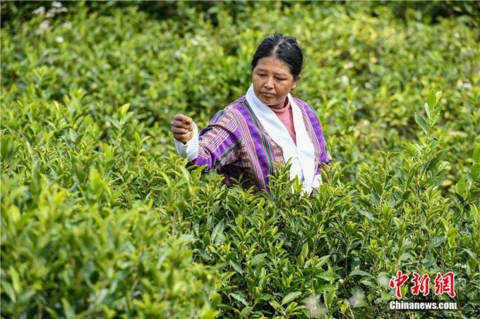 墨脫縣德興鄉(xiāng)易貢白村門巴族婦女采摘茶葉。貢嘎來(lái)松 攝