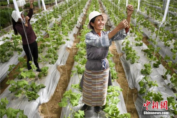 西藏山南扎囊縣綠之源智慧農(nóng)業(yè)項(xiàng)目的工人正在勞作。楊華峰 攝