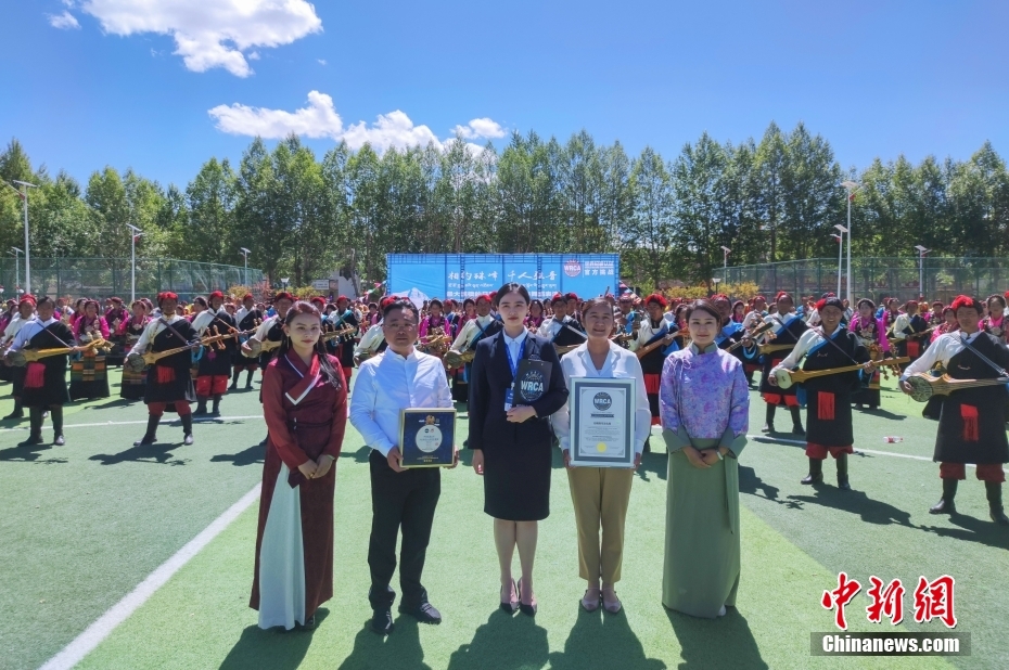 6月25日,“相約珠峰·千人弦音”西藏日喀則大型非遺歌舞展演在日喀則上海體育場(chǎng)舉行。經(jīng)世界紀(jì)錄認(rèn)證(WRCA)官方審核,該活動(dòng)成功創(chuàng)造“最大規(guī)模的日喀則非遺民俗舞蹈表演”世界紀(jì)錄。