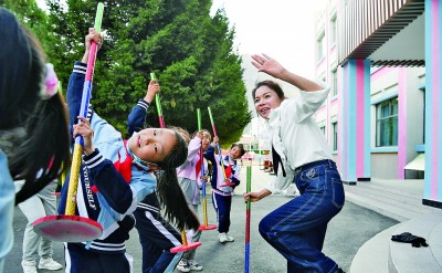 山南市第三小學(xué)的援藏教師甘夭娥帶領(lǐng)學(xué)生練習(xí)藏族傳統(tǒng)舞蹈“打阿嘎”。作為教育大省,湖南通過(guò)實(shí)施“山南湖南學(xué)校聯(lián)盟”工程,采取“一所學(xué)校包一個(gè)學(xué)科”的形式,把優(yōu)質(zhì)教育資源下沉到縣區(qū)和鄉(xiāng)村學(xué)校。攝影:辜鵬博(湖南日?qǐng)?bào)攝影記者)