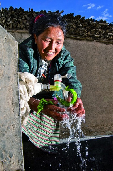山南市隆子縣隆子鎮(zhèn)葉巴村村民查斯卓瑪用自來(lái)水清洗辣椒。攝影:辜鵬博(湖南日?qǐng)?bào)攝影記者)