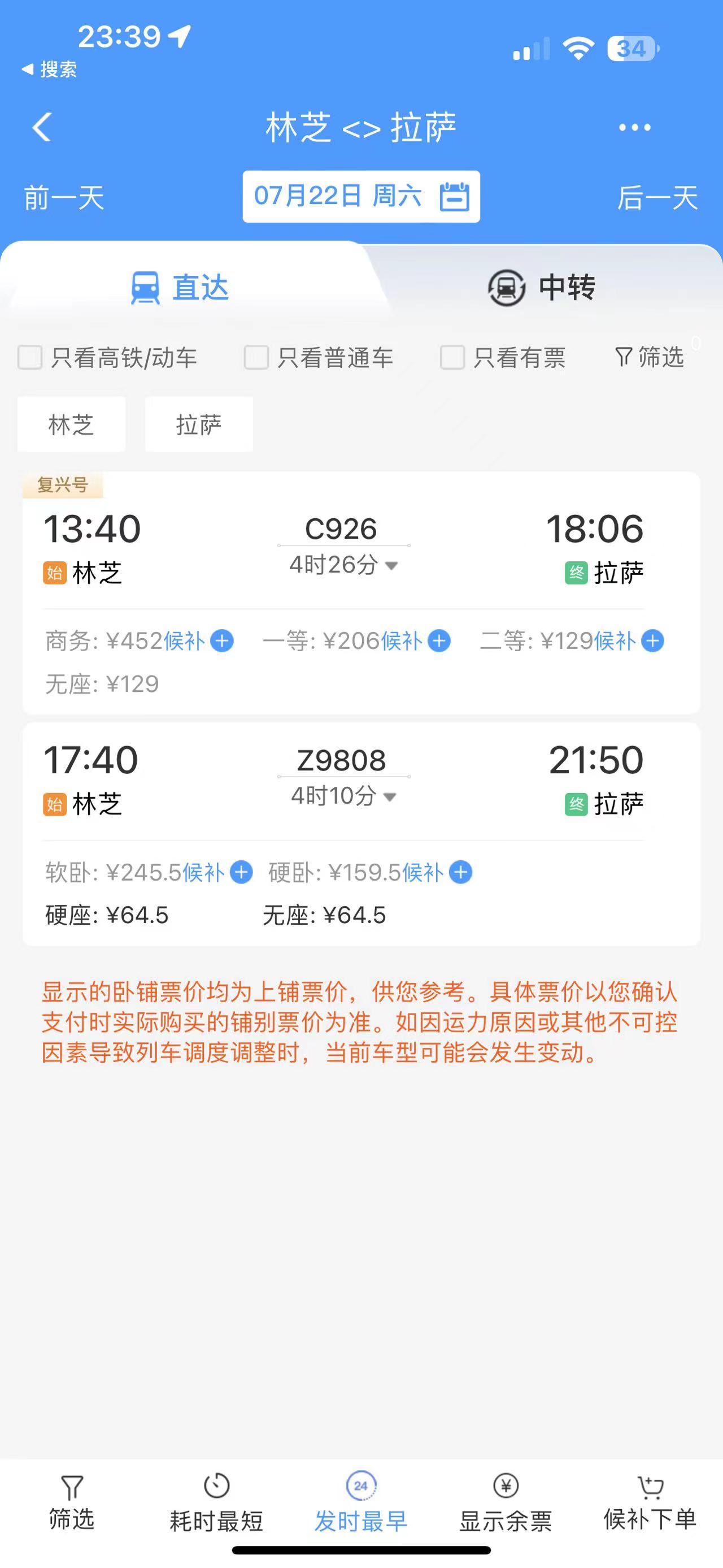 通過在鐵路售票APP上查詢發(fā)現(xiàn),從林芝開往拉薩的復(fù)興號城際列車的二等座票價為129元,直達特快列車硬座為64.5元。“相比較原先180元的客運汽車票價,直達特快列車便宜了近乎三分之一。”曹先生感慨地說道。