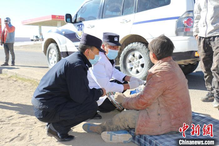 圖為民警救治受傷民眾。西藏出入境邊防檢查總站阿里邊境管理支隊供圖