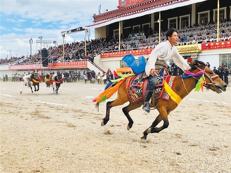 鄉(xiāng)村振興、那曲奮進(jìn)。群眾的智慧和創(chuàng)造力得以充分施展,田野鄉(xiāng)間的勞動(dòng)技能煥發(fā)出耀眼光彩,以賽馬為核心的傳統(tǒng)節(jié)日也因新比賽內(nèi)容的融入,相得益彰、相互促進(jìn),而富有了新的時(shí)代內(nèi)涵。