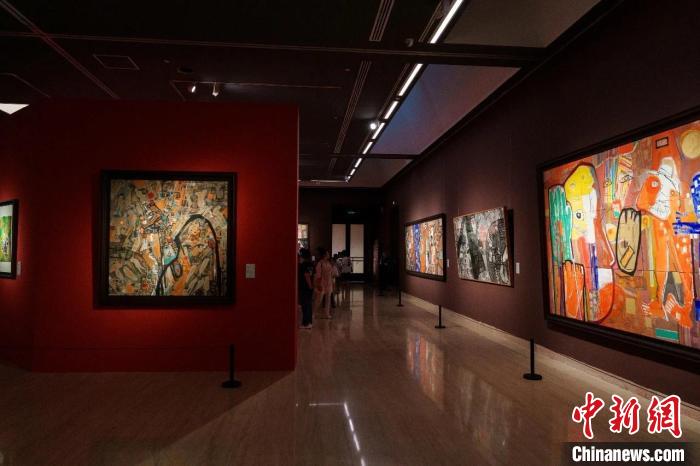 “藏色——巴瑪扎西畫展”亮相中國美術館,圖為展覽現(xiàn)場。 伴藏文化供圖
