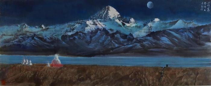 圖為劉洋國(guó)畫(huà)作品描繪的西藏岡仁波齊。 劉洋 供圖